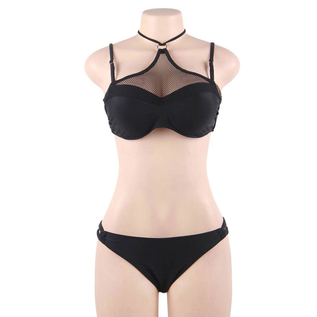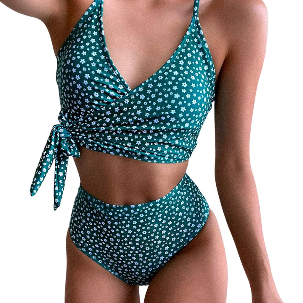 Traje de baño de cintura alta con vendaje cruzado azul diseño floral