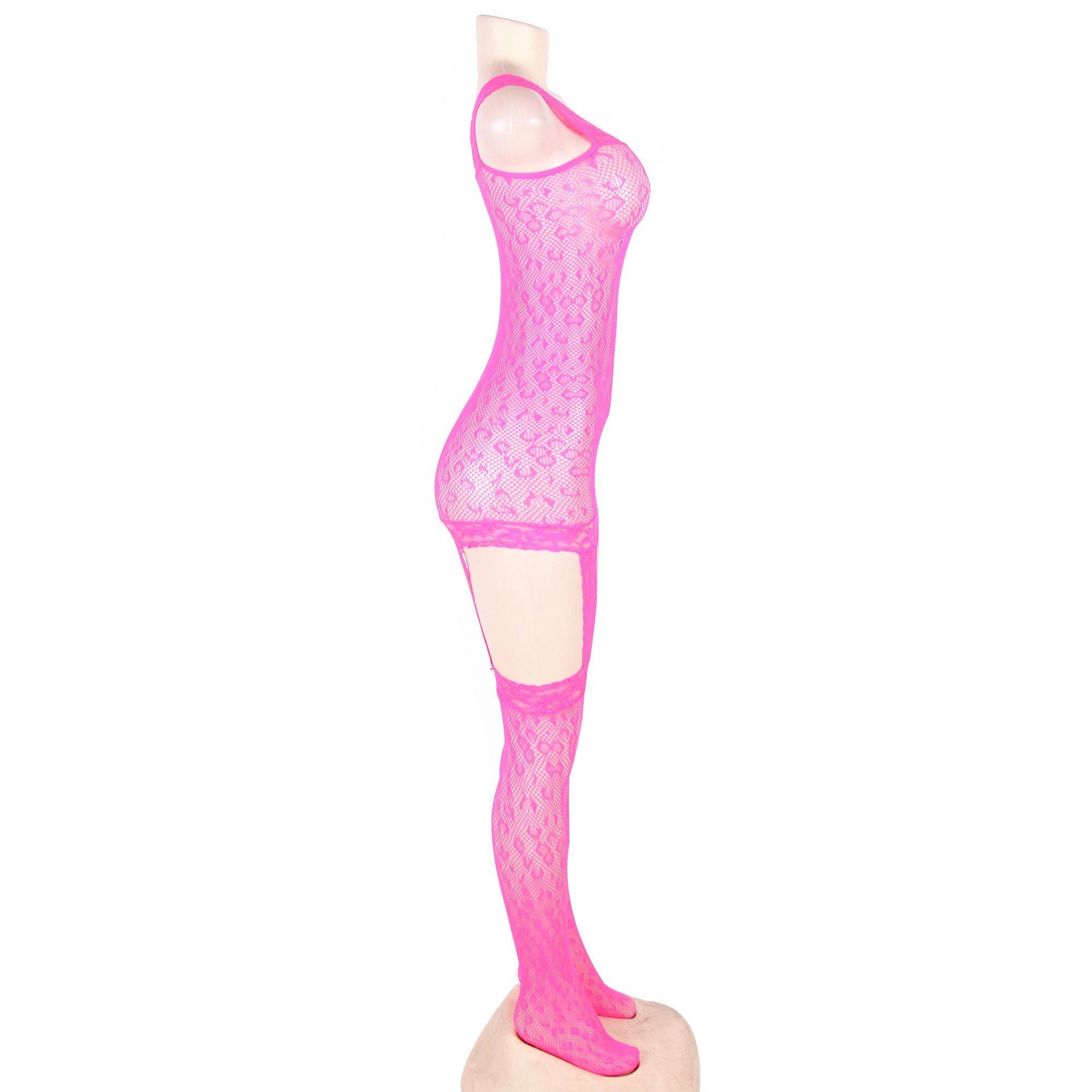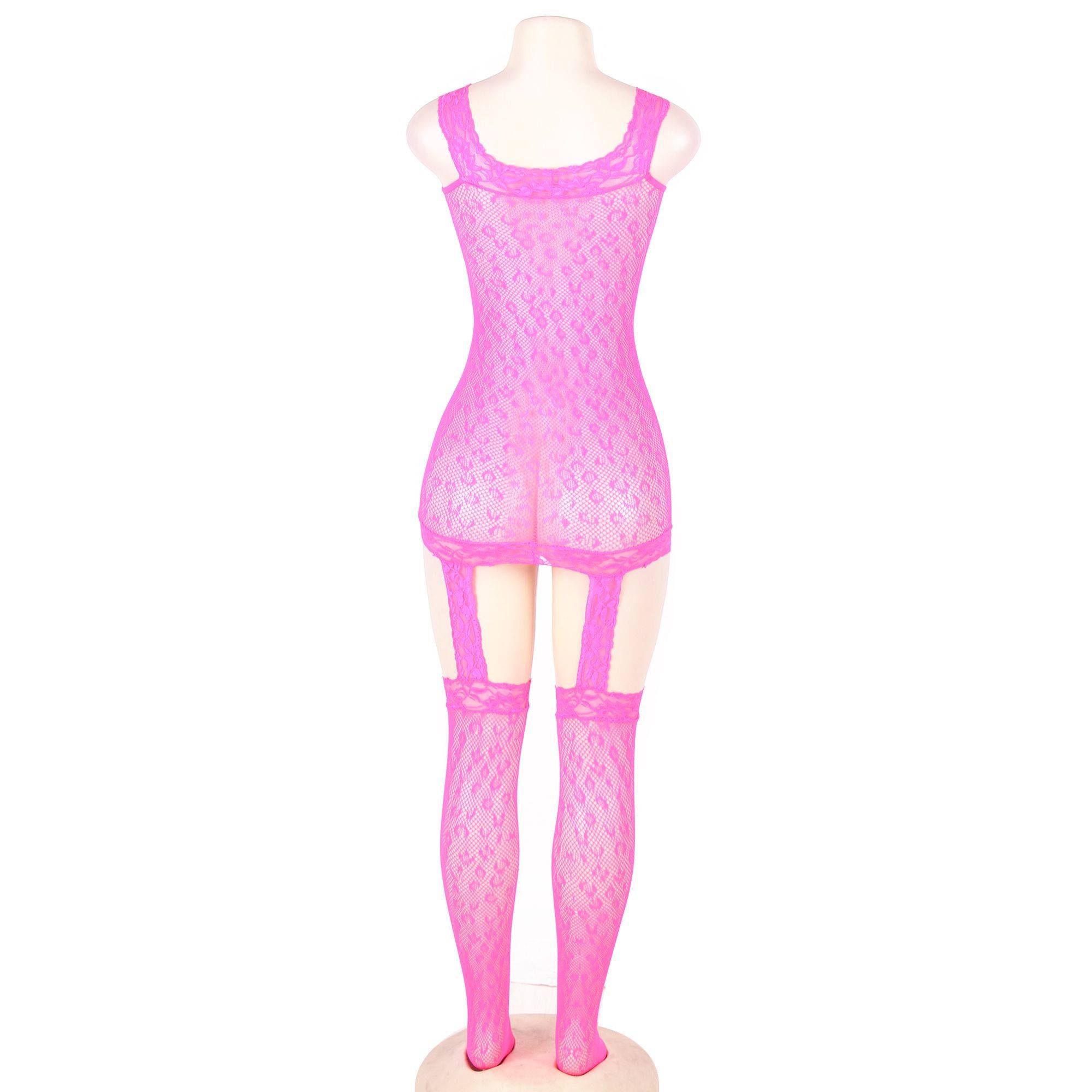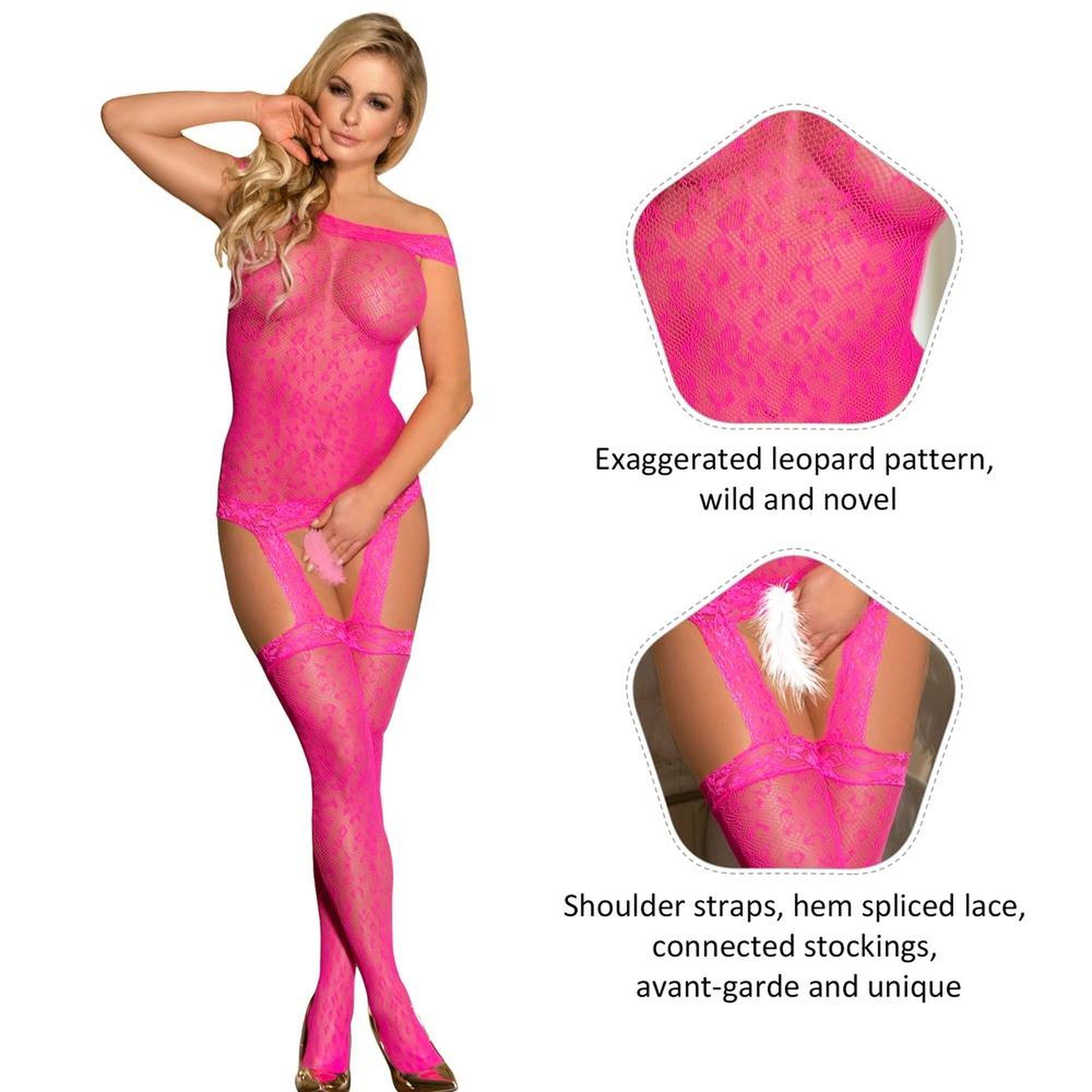Bodystocking de rejilla con estampado de leopardo y liguero en color rosa