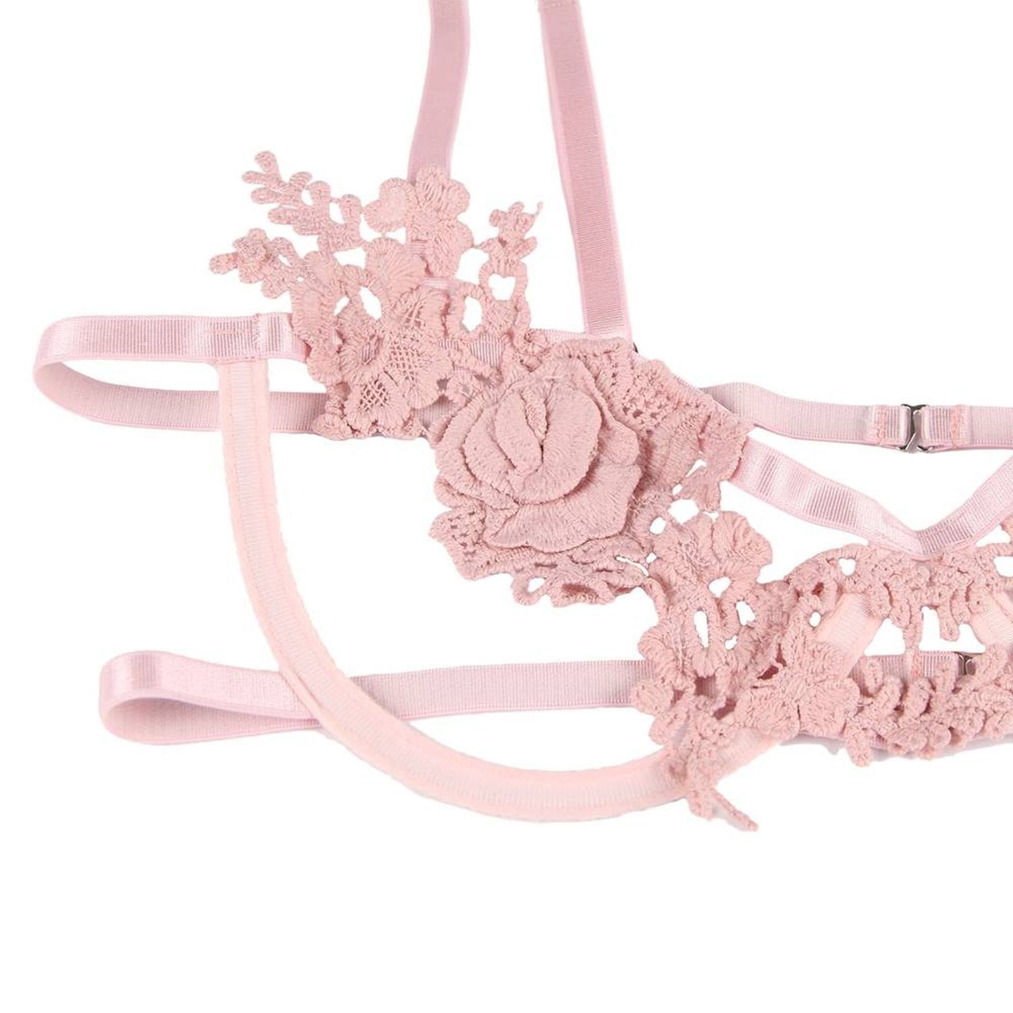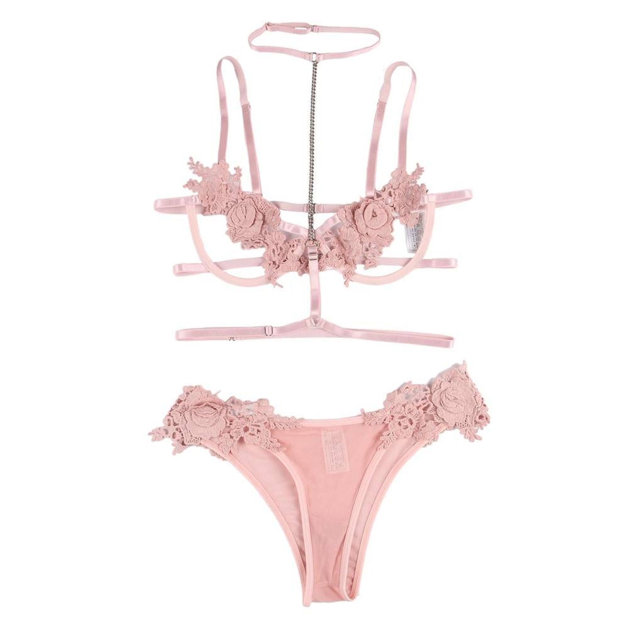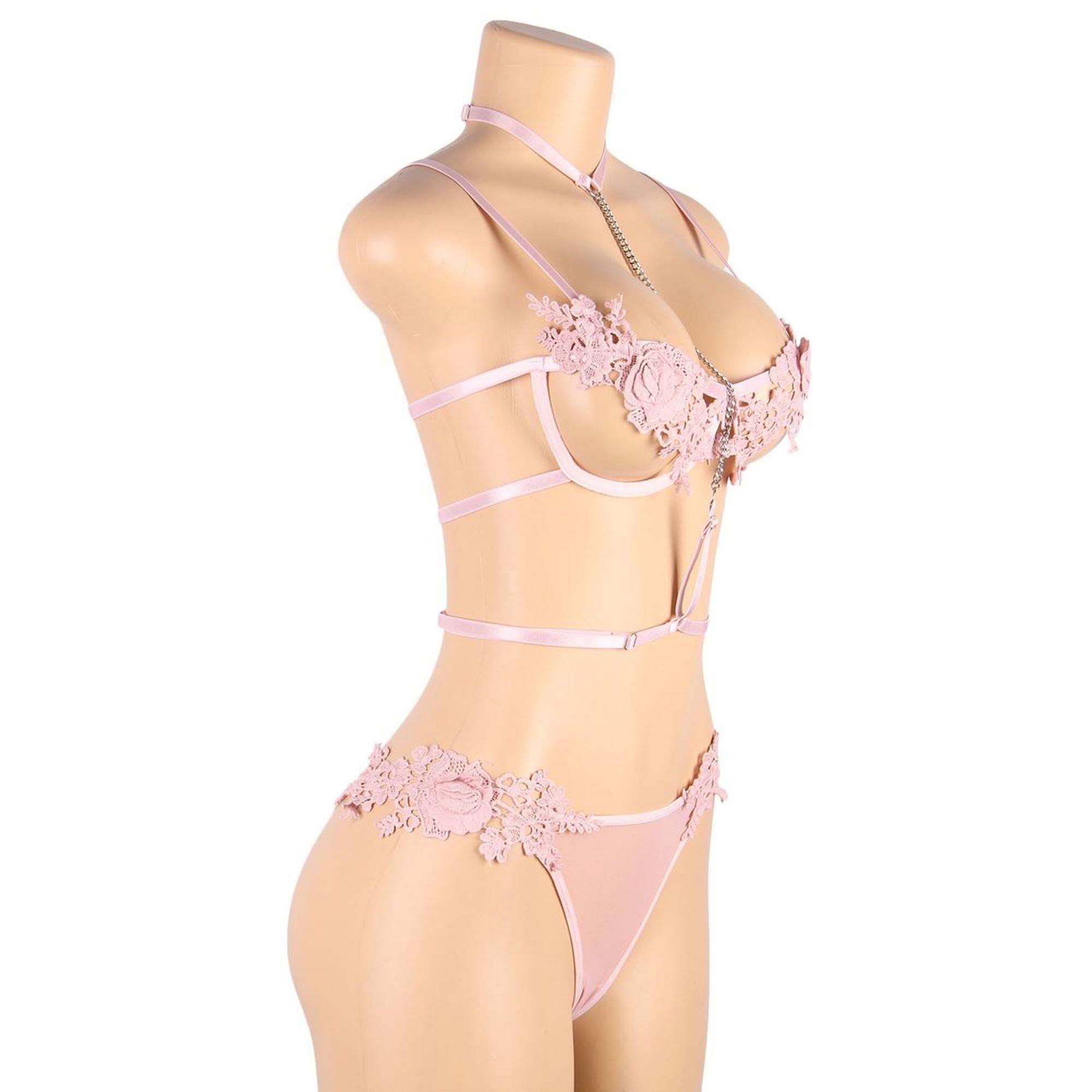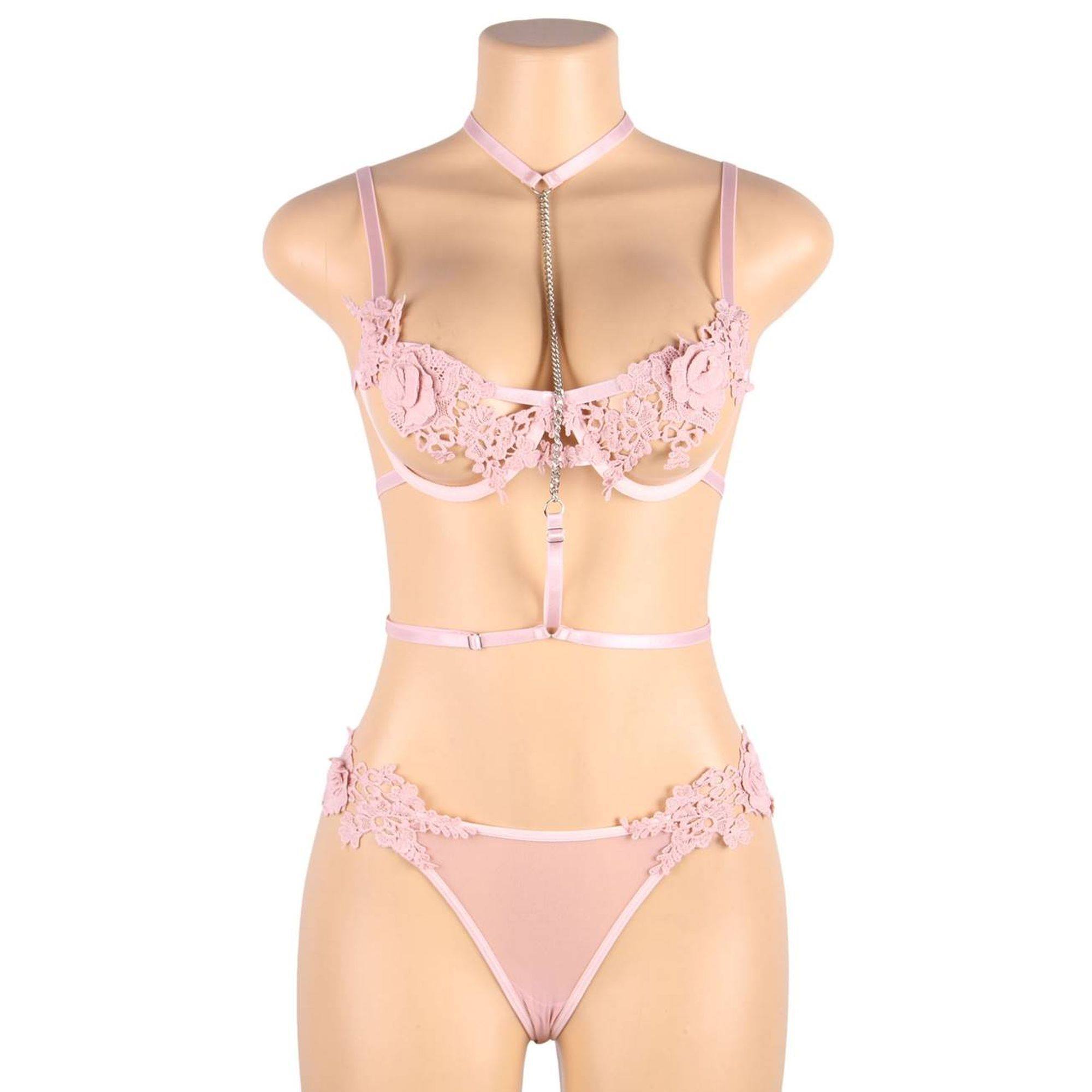 Conjunto de lencería con collar rosa