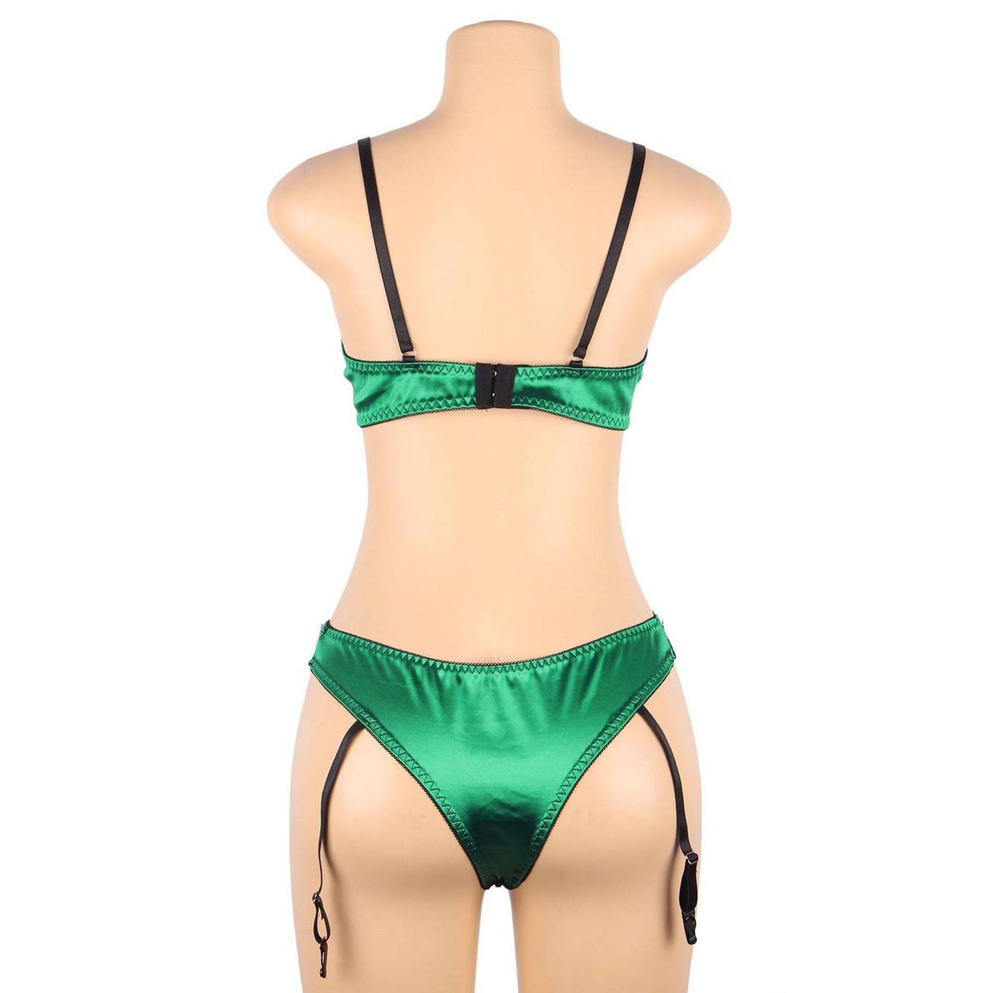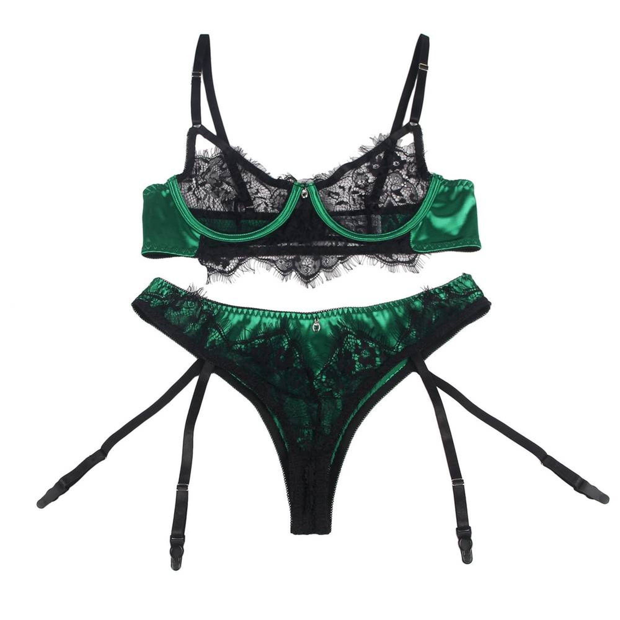 Conjunto de ropa interior con liguero verde y negro
