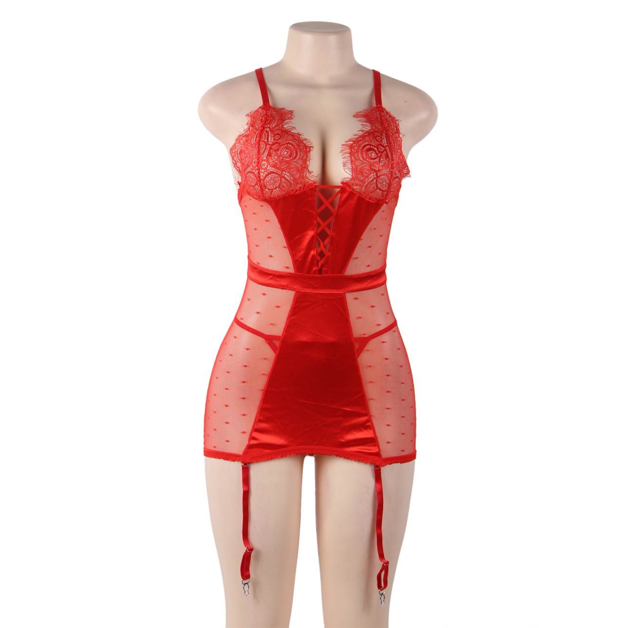 Lencería de liga con tanga transaparente rojo