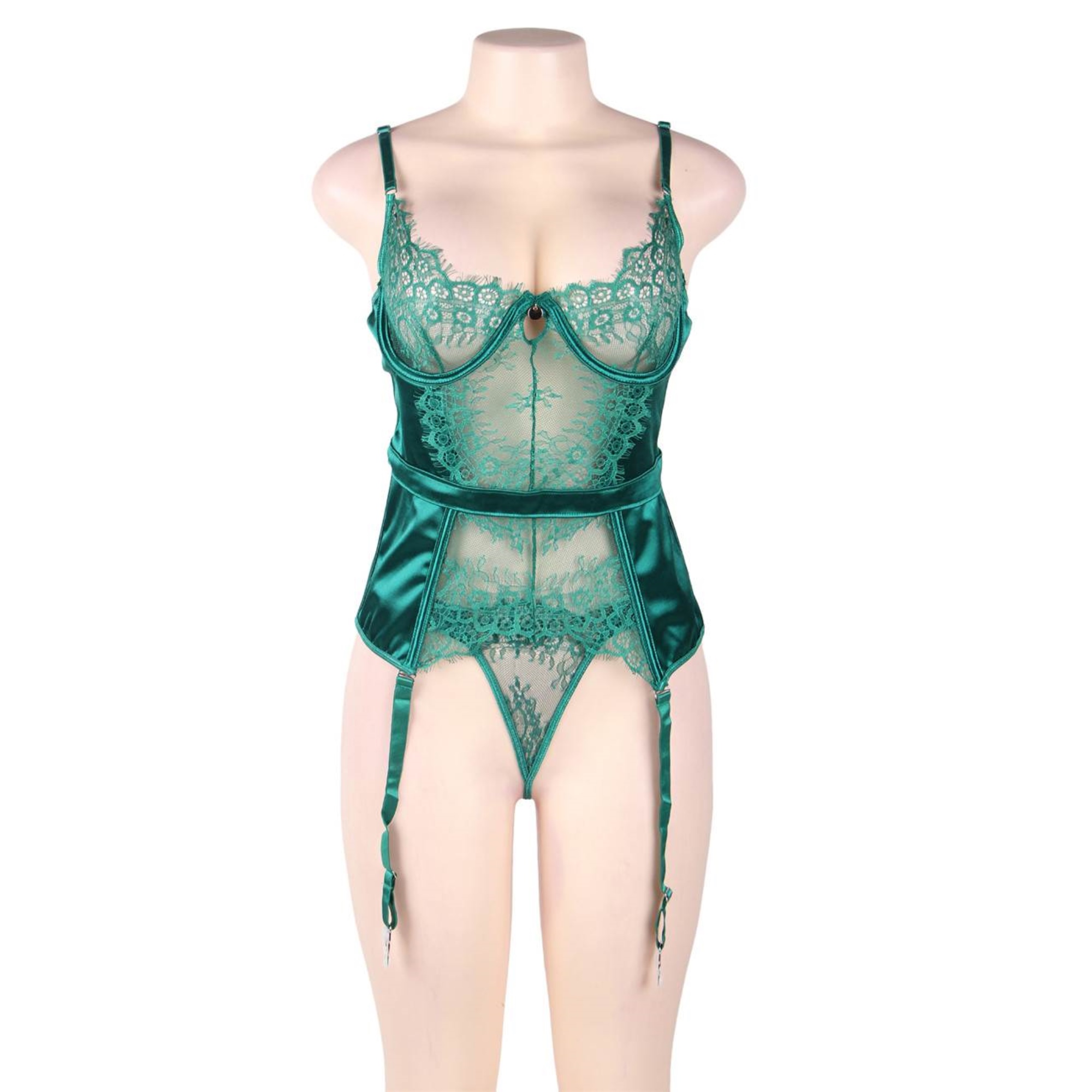 Lencería verde con liga de encaje