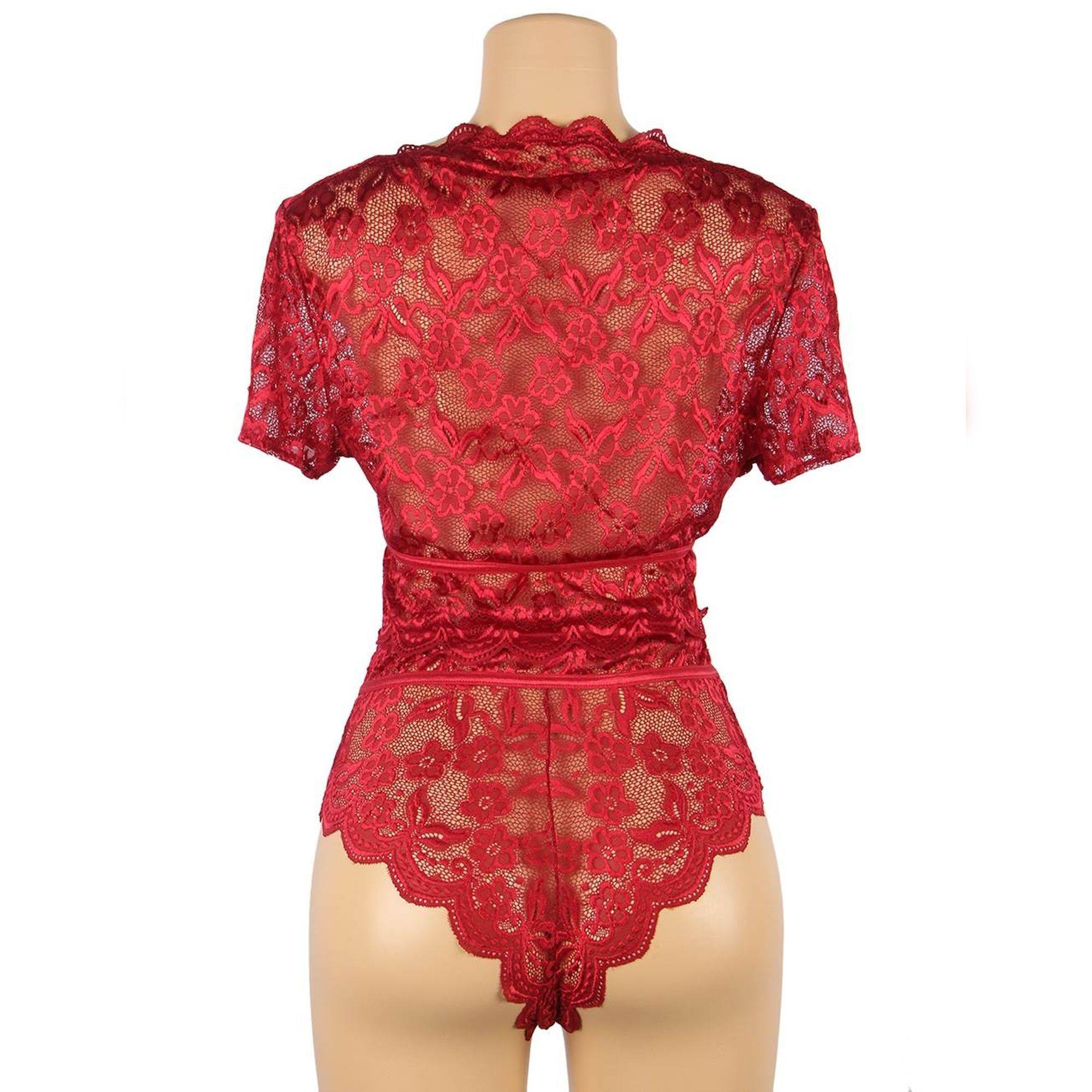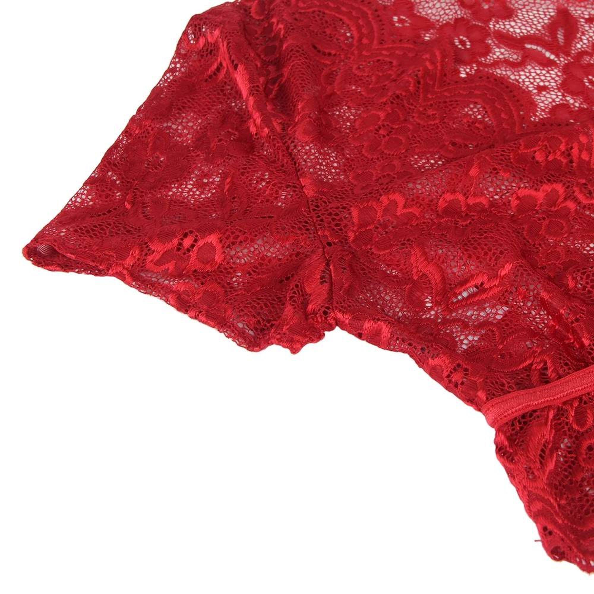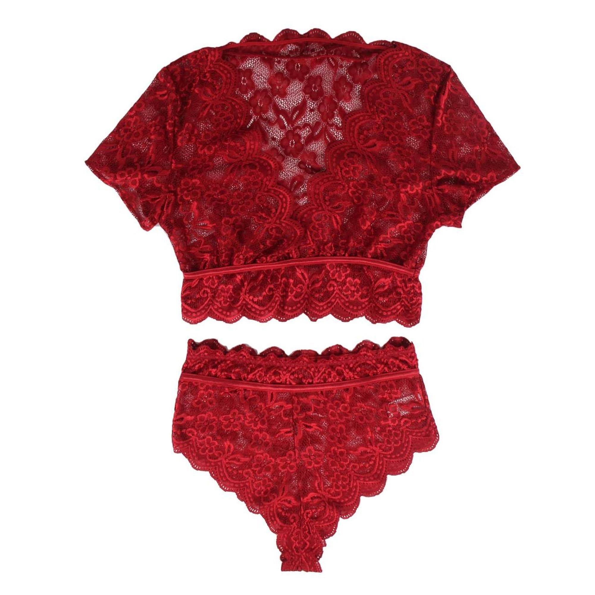 Top de manga corta y bragas rojas de encaje